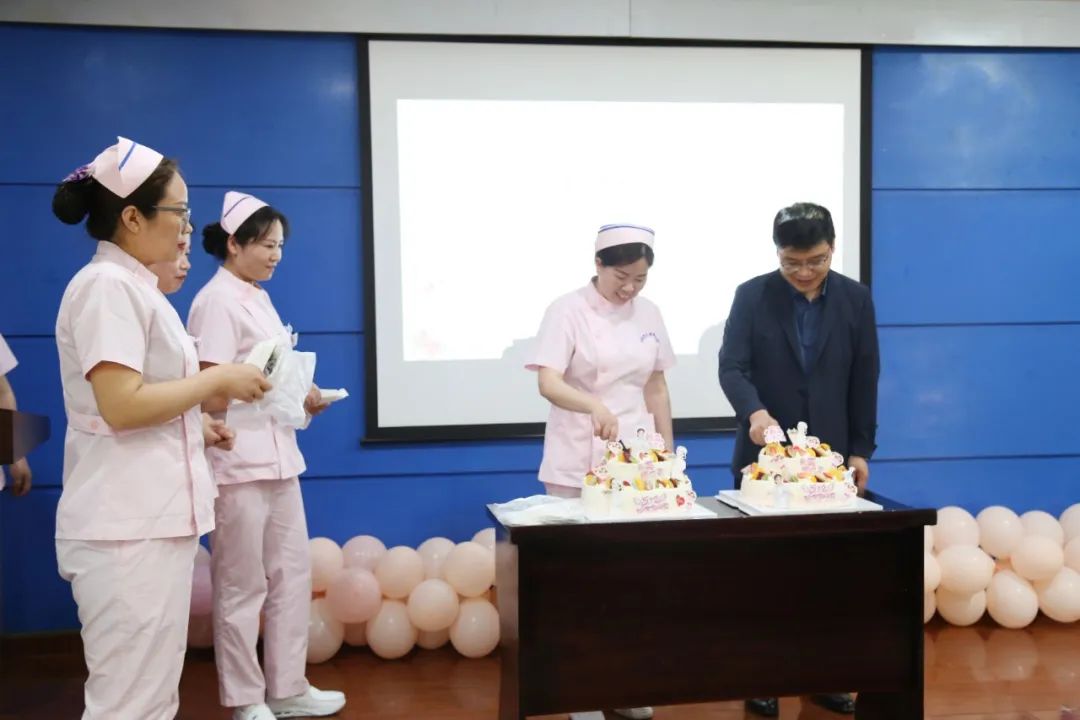 本次护士节庆祝活动特别准备了切蛋糕仪式, 医院领导将一份份蛋糕送到护士手中, 表达节日美好祝愿,一起分享节日的甜蜜和快乐!