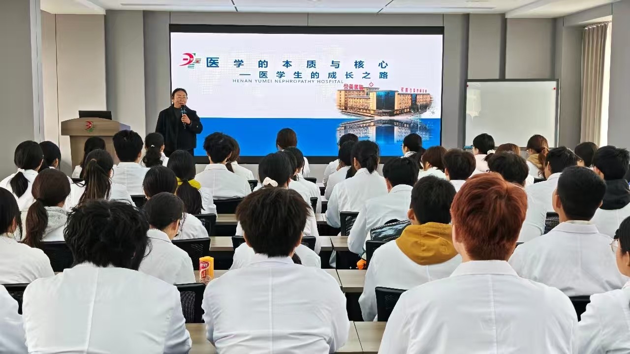 活动伊始,同学们在医院大厅聆听了梁院长对医院发展历程和整体布局的详细介绍。她特别强调,河南誉美肾病医院始终将“以患者为中心”作为一切工作的出发点和落脚点。从门诊流程的优化到住院环境的改善,从个性化治疗方案的制定到患者心理关怀的融入,医院在每一个细节上都力求体现“以患者为中心”的服务理念,让医疗不仅有技术,更有温度。